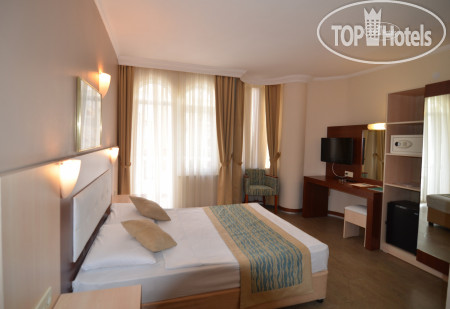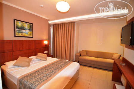 Впечатлило всё! Чистенько, уютненько. Еда максимально разнообразная(за все время даже половину не успели попробовать), бар отличный(выбора очень много), развлекательная программа каждый вечер(живая музыка на всех языках-это невероятно круто). Персонал отличный, вежливый, улыбчивый. До моря 3 минуты. На пляже имеются лежаки, зонты, холодная вода. Сам отель находится в достаточном удобном расположении: рядом сувенирные лавки, магазины, приезжающий базар в двух минутах от отеля, супермаркеты, рестораны, банкоматы. Есть все для хорошего семейного отдыха! Уверенные 4*!