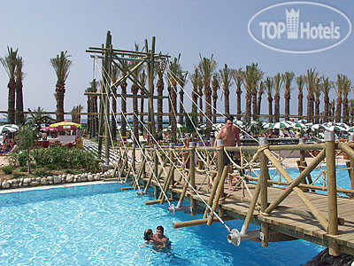 Выбрали мы этот отель, точнее супруга этот отель чисто из-за территории, зелёная территория, пальмы, кустарники, пляж шикарный песчаный без мусора и с красивой архитектурой лобби, да и в целом всего отеля. Плюс это конечно его бассейны, ВЫ прям будете наслаждаться им, такое ощущение что все дорожки, бары, рестораны построены на бассейнах, они там везде. Когда мы заезжали у него было 5 звёзд, со временем, почему то сняли одну звезду, скажу что незаслуженно, отель лучше многих пятёрок. У него есть свой шикарный аквапарк, огромная зелёная територия, а какие там виды с номера, просто обалдеть. Вот здесь в Сиде море прям как парное молоко, у меня атопический дерматит и хочу сказать Вам, что вот именно в Сиде кожа стала чистой, хотя в других районах Турции такого не было, не знаю с чем связано. Ну ладно щас подробнее отель опишу.