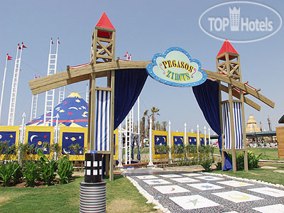 Шикарная территория, зелёная, ухоженная. С удовольствием прогуливались по огромной площади Peqasos World, есть чем заняться, концепция отеля продумана основательно - на любой вкус и предпочтения!