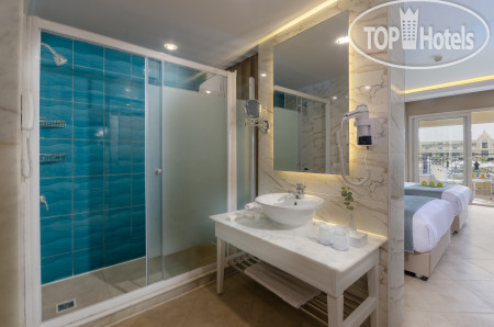 Питание хорошее, есть большой выбор всего, очень классный ужин в понедельник - рыбный вечер, большой выбор рыбы и морепродуктов, так как мы любим рыбу нам очень понравилось. На территории много бассейнов для детей т для взрослых, но мы в основном были на пляже. Перед отъездом почитали не очень хорошие отзывы о пляже и было страшно, но увидев этот замечательный пляж с пологим заходом мы не расстроились, отлично купались, вода в море замечательная.