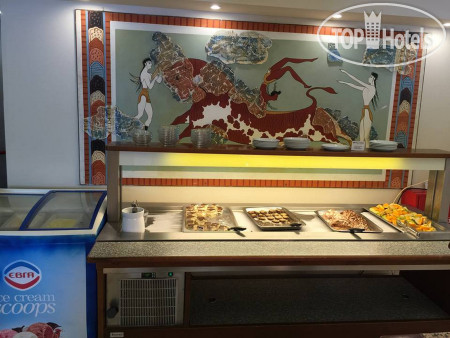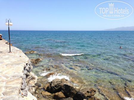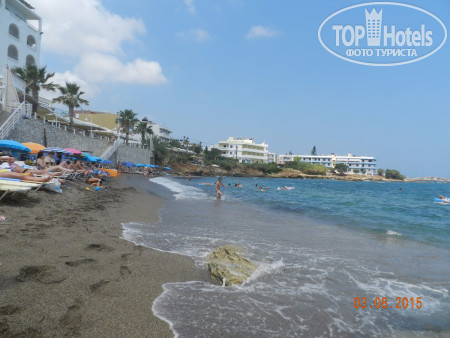 Итак, по прилету в отель где-то около 9 утра, заселения ждали часов до 12, сказали нет свободных номеров. К 12 нам дали ключ от номера на верхнем этаже, но я читала отзывы что верхние номера крошечные, поэтому мы даже не стали брать чемоданы, поднялись посмотрели номер. Действительно номер крошечный, некуда положить чемодан, санузел размером с душевую кабину. вернулись вниз, сказали что не гуд, туда не пойдем. Парень на ресепшен улыбнулся и дал другой ключ от номера на 2 этаже. Мы конечно просили номер с видом на бассейн, но дали на дорогу. Может номера на бассейн дают иностранцам или семьям с детьми. Ну да ладно, сойдет и на дорогу. Стеклопакеты отличные и шум от дороги нам никак не мешал. Номер оказался нормального размера, а в сан узле ванная!!!!Чудеса. Кондиционер работал, удобная кровать, шкаф для одежды. Номер мы одобрили и помчали отдыхать и раскладывать вещи. дальше отдых пошел как по маслу. Питание - очень сложно остаться голодным, не реально. Омаров не было, но мы и дома их не ели. На завтрак всегда яичница, омлет, несколько видом сосисок, оладушки, хлопья, джемы, йогурт, молоко. Кофе мы привозили с собой молотый, заливали там кипятком, потому что привередливые)))) На обед и ужин несколько видом горячего. Всегда говядина, гуляшом, очень вкусно приготовленная, рыба стейками белая, овощи свежие, отварные, салаты, Из фруктов арбузы, дыни, апельсины, яблоки, сливы. Мороженное. Мы очень хотели инжира, спросили на ресепшене есть ли недалеко рынок, где его купить. Нам ответили - за отелем дерево огромное, растет просто так, никому не нужно, идите и нарвите себе. Что мы собственно и сделали)))). До моря 3 минуты. Причем мы обошли все пляжи, в радиусе 40 минут ходьбы и отельный оказался самый лучший)))) Но надо спуститься по ступенькам вниз, потому что отель от моря как бы на возвышенности, возможно будет неудобно с колясками. Если пройти 3 минуты влево, то будет дикий пляж, где погружаются дайверы и что-то там смотрят. Мы тоже смотрели только с трубкой и маской. Видели много ежей и несколько симпатичных рыбок. море теплое, на нашем пляже волн не было, а вот у соседних 5* очень даже были, мы не смогли купаться. При выходе из отеля вправо и влево попадаешь на улочку со всевозможными магазинчиками. Убирались в номере каждый день, нам так часто и не нужно было. Геля-шампуня нет, но мы возим с собой. Брали машину у туроператора, по деньгам оказалось как на улице, а проблем никаких. Никто не принимал машину, просто оставили ключи на ресепшн. Очень понравилось. Механика пежо 60дол день. Были на пресном озере Курнас, в Агиос Николаус и на Шайтан лиман пляже(советую только очень ловким и без детей)))) фото приложу))) Крит очень красивый остров! В отеле сидеть просто грех. Ни разу не останавливала полиция, штрафы не приходили. Греки очень приятные, добрые и тактичные люди. Вечером гуляли в старую деревню, которая находится вверх по горе, очень понравилось и идти не далеко. Обратно только по темноте страшновато. В 2021 году этот отель считался 4*, сейчас 3*. Не знаю уж за что понизили. Алкоголь кстати нормальный. Брали разливное бренди, пиво, белое вино. Вполне себе ничего. Отдыхом мы очень довольны и в следующий раз я за такие деньги 100% в него снова бы поехала. Если есть вопросы - задавайте.