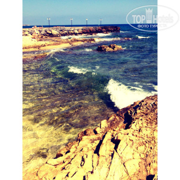 Море: Отель от моря близко 5 минут пешком. Берег каменистый, а там, где есть песочек то он практически весь занят платными шезлонгами (около 5 евро), и все время волны они добивают прямо до шезлонгов. На полотенце на песочке не позагораешь, поэтому мы лежали на камнях. Заход в море кое-где песчаный, но в основном камни, берите плавательные тапки. Плавала с маской, когда море становилось спокойнее все очень хорошо видно ежей, рыбок, морское дно. Вода теплая, можно долго времени провести в море.