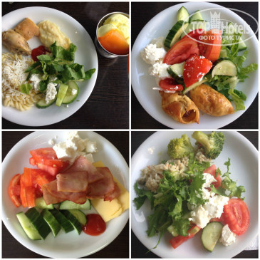 Еда: Еда была вкусная, но без излишков и изысков ее не очень много, но выбрать можно было. Из мяса были: курица, говядина, свинина, печень, тефтельки, шницели, котлетки в кляре. На гарнир были: рис, макароны, картофель (каждый день по-разному приготовленные). Были так же овощные салаты, просто овощи, бобы, кукуруза, всякие запеканки, пирожки из слоеного теста с начинкой, греческий салат, сладости, мороженое, хлопья и фрукты. В общем, наедались мы всегда. Из напитков горячий шоколад, чай, соки, газировка и алкоголь местного производства.
