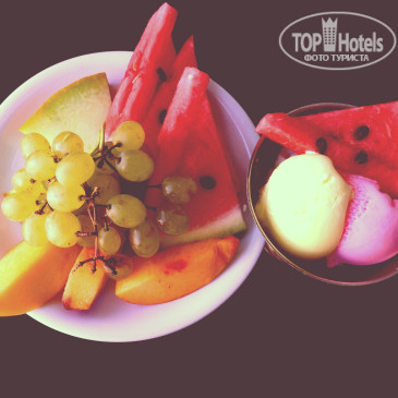 Отель работает по концепции "Все включено". Из напитков в баре предлагают местное вино - белое/красное, бренди местный,водка, пиво. Из безалкогольных напитков есть чай/кофе/ вода, лимонады.